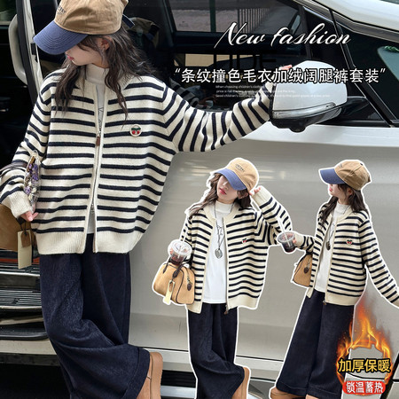 邓*萍下载“339款咖色彩条开衫加绒裤套装”图片包